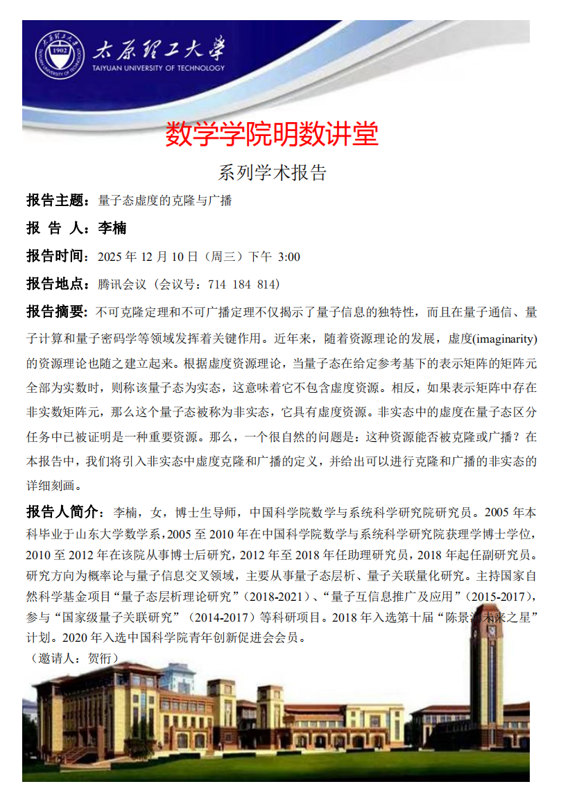 威尼斯vns08866登录将于12月10日邀请李楠研究员做学术报告