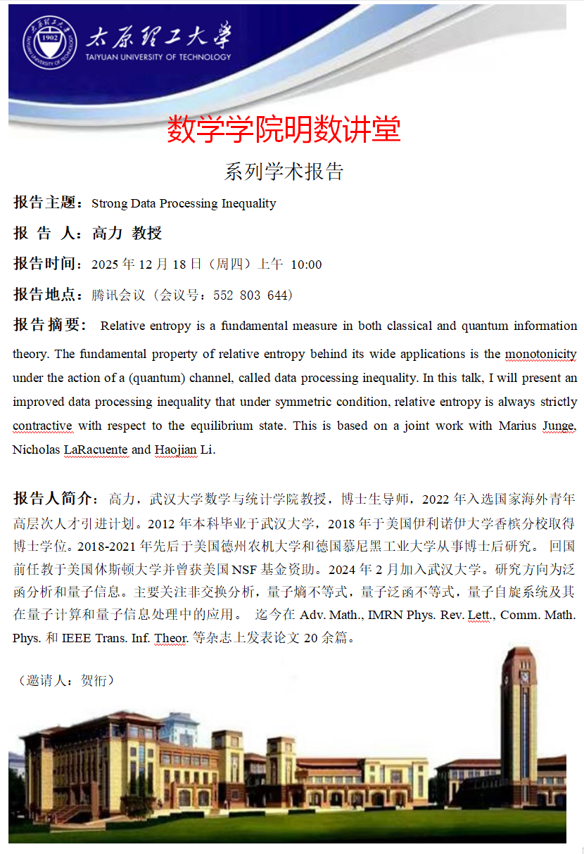 威尼斯vns08866登录将于12月18日邀请高力教授做学术报告