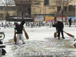活动中,师生们不畏严寒、分工协作,对威尼斯vns08866登录门口、周边道路以及常师贞小广场等重点区域进行了集中清理。扫帚与地面的摩擦声此起彼伏,忙碌的身影在白雪中勾勒出一道道温暖的风景线。经过全力奋战,主要通行区域的积雪得到有效清除,为师生的安全出行提供了有力保障。