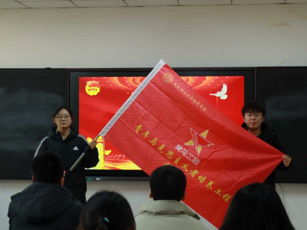 随后,第三期、第四期“尚德班”班长进行了班旗交接。此刻,交到第四期“尚德班”学员手中的不单单是一面旗帜,更是青马人的责任与使命。
