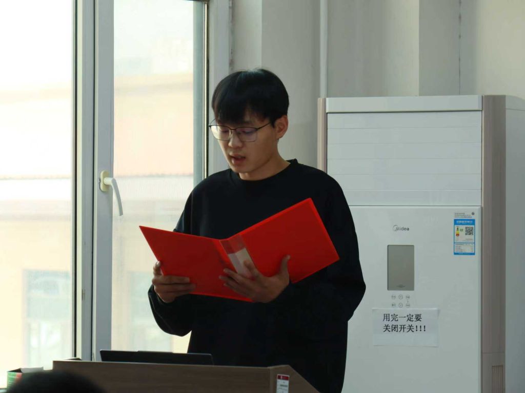第四期学员代表王国烨上台发言,他表示,新一期学员将从坚定理想信念、投身实践、坚持学习、锤炼品德、发挥引领作用五方面践行青马精神,努力成为有信仰、有担当、有作为的新时代青年,为民族复兴贡献青春智慧。